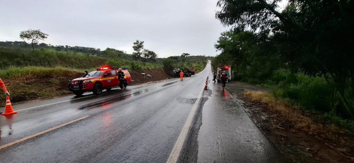 Carreta tomba na BR-365 em Minas Gerais, envolvendo pai e filha de 9 anos