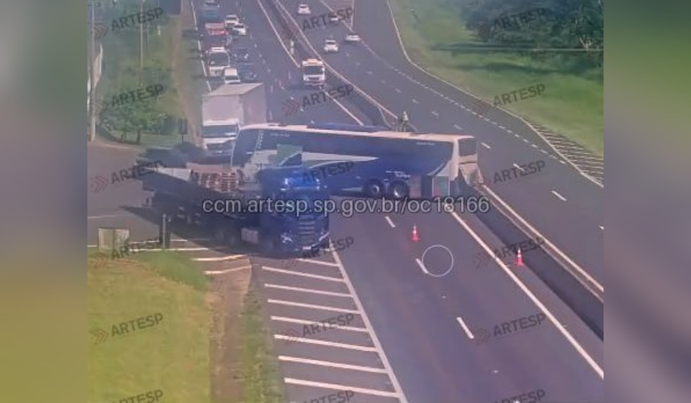 Ônibus desgovernado interdita rodovia em SP durante manutenção de freios