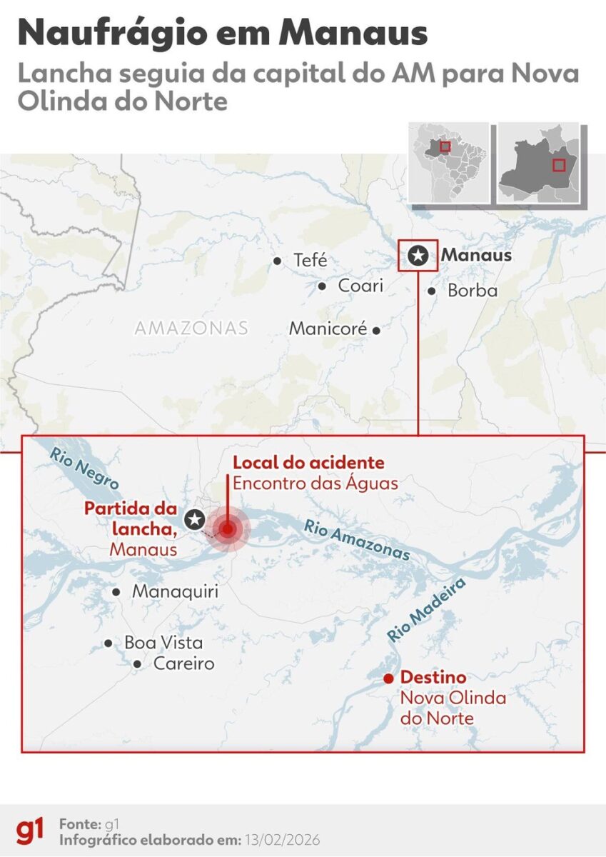 Passageira de lancha naufragada em Manaus grava vídeo à deriva no Encontro das Águas. Acidente deixou mortos e desaparecidos. Saiba mais aqui.