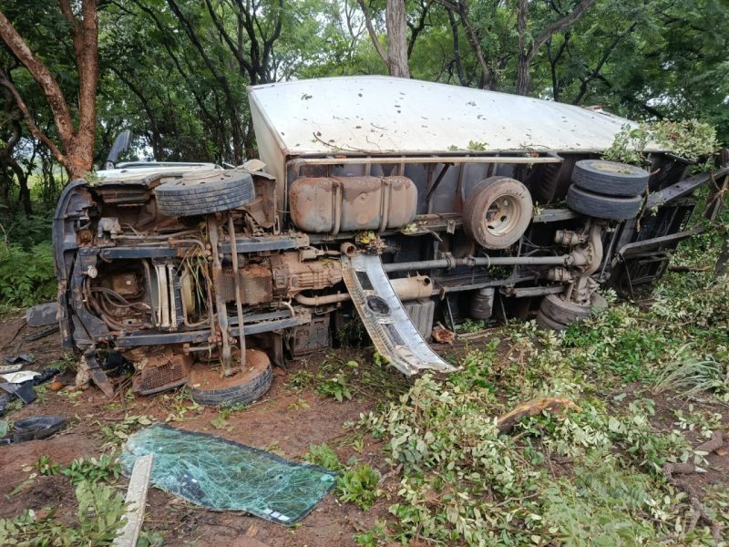 Motorista fica inconsciente e preso às ferragens após caminhão bater em árvore na zona rural de Pirapora.