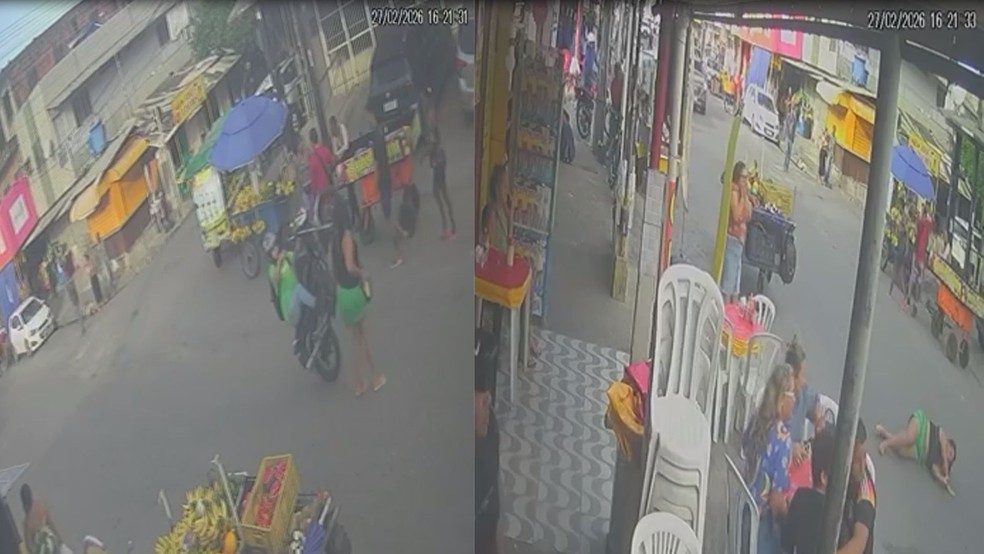 Motociclista empina moto, atropela duas mulheres em Jaboatão dos Guararapes. Vídeo mostra batida na Avenida Almirante Dias Fernandes em Prazeres.