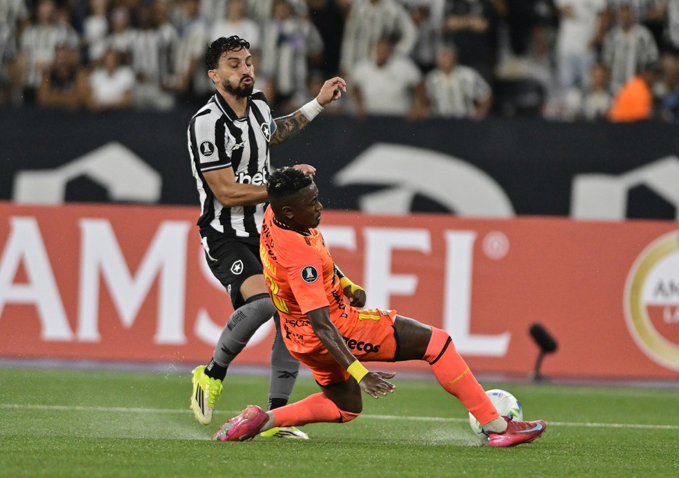 Torcida do Botafogo protesta após eliminação na Libertadores com derrota para o Barcelona. Goleiro Léo Linck é alvo de xingamentos. Capitão pede desculpas.