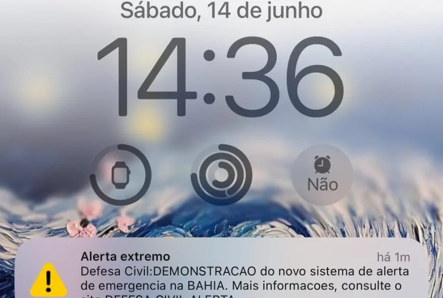 A Defesa Civil emitiu, na tarde deste sábado (14), a primeira mensagem do novo Sistema de Alerta. Em Salvador, a mensagem foi recebida pela população através de SMS, às 14h36, e foi acompanhada de um alerta sonoro. O Governo Federal já havia informado que o Sistema de Alerta seria acionado para um teste a partir das 12h. O presidente Luiz Inácio Lula da Silva participou do evento, que aconteceu no Centro Nacional de Gerenciamento de Riscos e Desastres (Cenad), em Brasília, no Distrito Federal. Segundo o Governo federal, o alerta será enviado neste sábado para Salvador e outras 35 cidades do Nordeste. A iniciativa tem como objetivo preparar a população para o início da operação oficial do sistema na região, prevista para 18 de junho. Com o novo sistema, a Defesa Civil quer prevenir desastres, orientando que as pessoas saiam das zonas de risco a tempo.