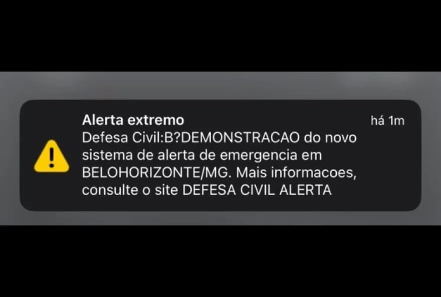 O novo sistema de alerta de risco extremo nos celulares de moradores de Belo Horizonte, na tarde deste domingo (1°/12), causou alvoroço nas redes sociais. A Defesa Civil de Minas Gerais e o governo federal realizaram uma demonstração da ferramenta, que começará a funcionar oficialmente em 4/12. Apesar do aviso prévio sobre o teste, os moradores da capital compartilharam nas redes sociais o susto com o barulho do alerta.