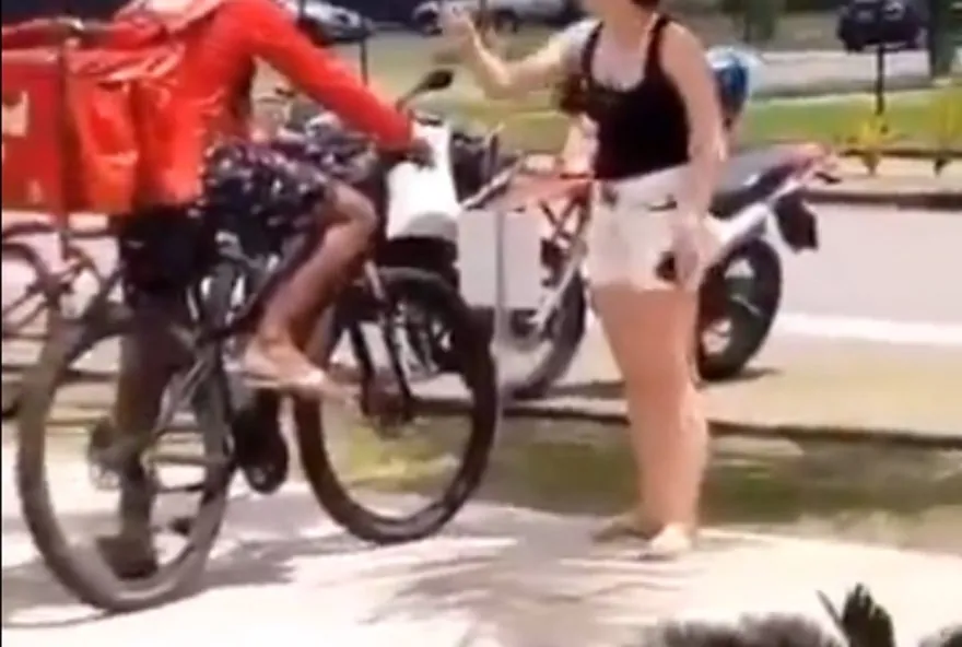Tiago Miranda explicou que decidiu gravar a situação após a delegada começar a ameaçá-lo de prisão. Ela chegou a avançar em sua direção, tentando pegar o celular e exigindo a entrega da comida. A delegada ainda retornou ao prédio para informar que entraria em contato com a plataforma do aplicativo de delivery. Além dos xingamentos, o entregador relatou que a delegada chegou a puxá-lo pela mochila de entregas, conhecida como bag, na tentativa de derrubá-lo.