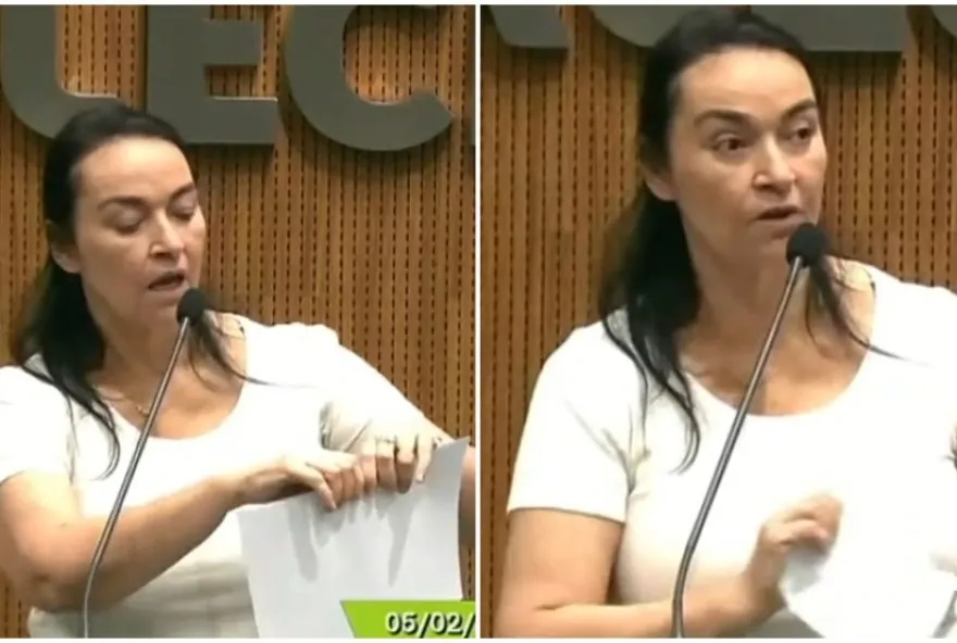 Vídeo: Deputada rasga pacto contra feminicídio durante discurso no Ceará