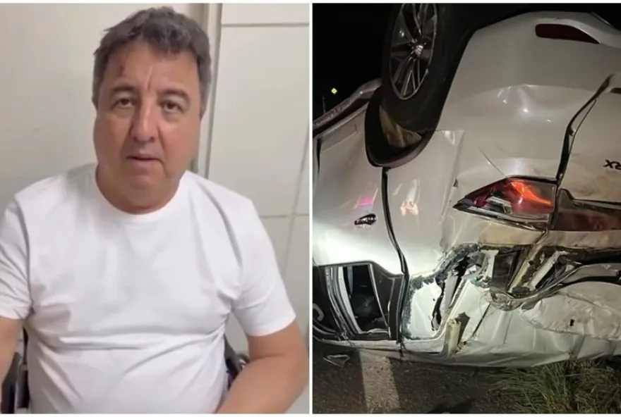 “Tem uma curva declinada, muito acentuada, que não tem sinalização. E aí o motorista, para evitar sair da pista, puxou de uma vez para dentro da pista. O carro deve ter tombado ali umas duas ou três vezes. Graças a Deus tava todo mundo com o cinto. Ninguém teve nenhuma sequela, nenhum problema maior”, contou o deputado nas redes sociais.