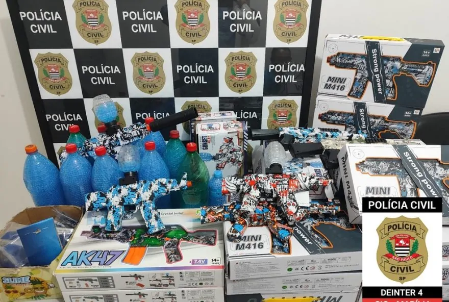 A Polícia Civil de Marília (SP) prendeu seis pessoas e apreendeu mais de 200 armas de gel e cerca de 2 mil pacotes de esferas de gel durante a “Operação Gel Blasters”, realizada na manhã desta quinta-feira (9).