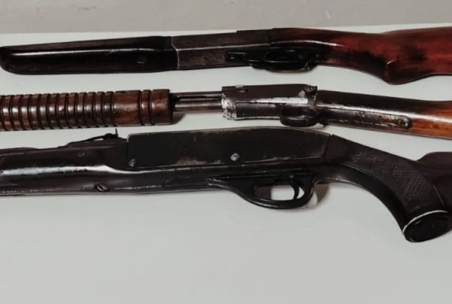 A PM relatou que, enquanto realizava o patrulhamento na região, avistou um indivíduo no interior do estabelecimento com um objeto escondido sob a blusa, suspeitando ser uma arma de fogo. Após uma inspeção minuciosa no bar, os policiais localizaram uma espingarda. O proprietário admitiu possuir mais duas armas no mesmo local.