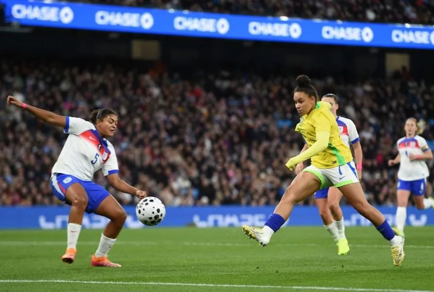 Dudinha, a jovem atacante de 20 anos da seleção brasileira de futebol feminino, teve uma atuação brilhante na vitória do Brasil sobre a Inglaterra. No amistoso realizado no Etihad Stadium, em Manchester, Dudinha deu o passe para Bia Zaneratto abrir o placar e marcou o segundo gol da partida, contribuindo assim para o triunfo por 2 a 1. Após o jogo, a atleta comemorou sua performance decisiva contra a atual campeã europeia, destacando a importância desse feito em um confronto de alto nível.
