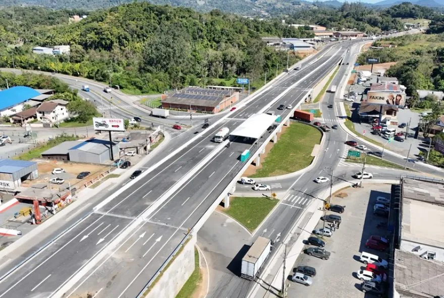 Uma nova etapa fundamental da duplicação da BR-470 em Santa Catarina foi entregue no Complexo Viário do Badenfurt, localizado no km 57 da rodovia, na cidade de Blumenau. O evento, que ocorreu hoje, marca um marco importante após mais de uma década de obras para melhorar a infraestrutura viária na região. Esse novo viaduto promete facilitar o tráfego de aproximadamente 30 mil motoristas que circulam diariamente por essa área crítica da rodovia.