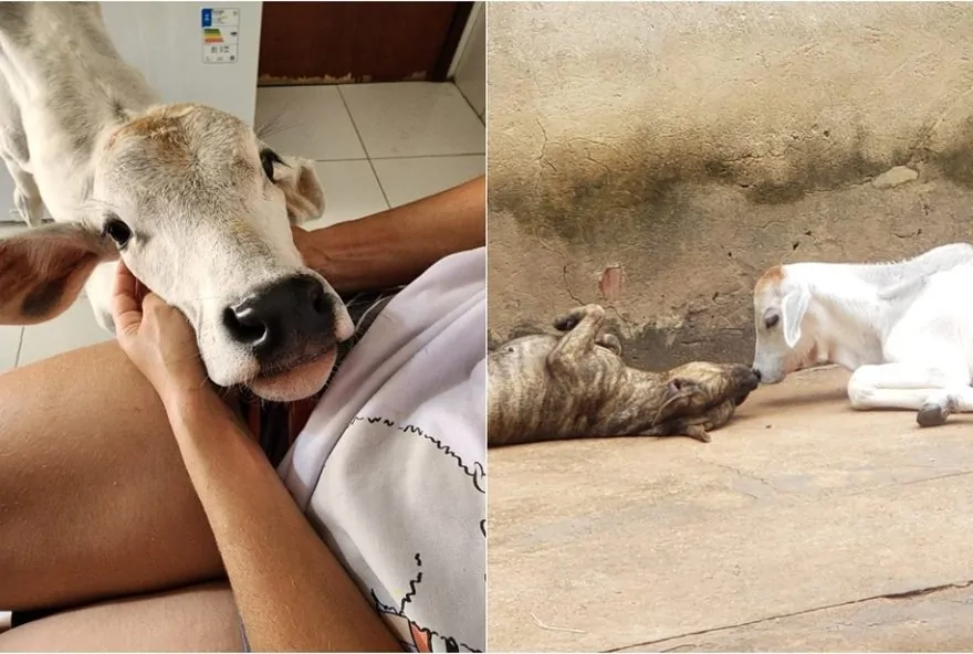 sudeste de Goiás. Ela e a filha decidiram levar para casa o bezerro que estava