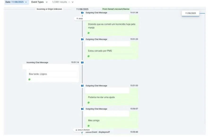 Mensagens recuperadas pela polícia mostram Renê Júnior sendo orientado pelo “amigo”. O Diário do Estado entrou em contato com o homem, mas não obteve retorno até a publicação desta reportagem.