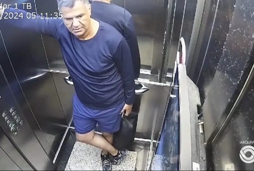 Empresário Jailson Ferreira da Silva filmado em elevador no dia de operação da polícia em Porto Alegre — Foto: Reprodução