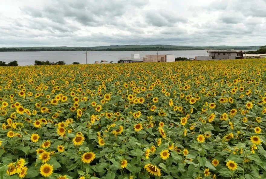 Uma plantação de girassóis mudou a paisagem de um condomínio náutico localizado