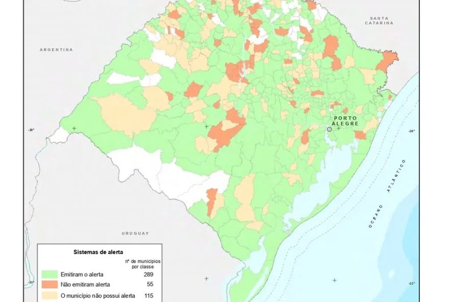 Entre os atingidos, 170 prefeituras informaram que não emitiram avisos. No total, 115 cidades declararam não ter sistema de alertas, enquanto 55 tinham sistema, mas não emitiram alertas. O capítulo sobre o desastre climático foi especial na edição 2024 da Pesquisa de Informações Básicas Municipais (Munic), com dados coletados entre agosto de 2024 e fevereiro de 2025.