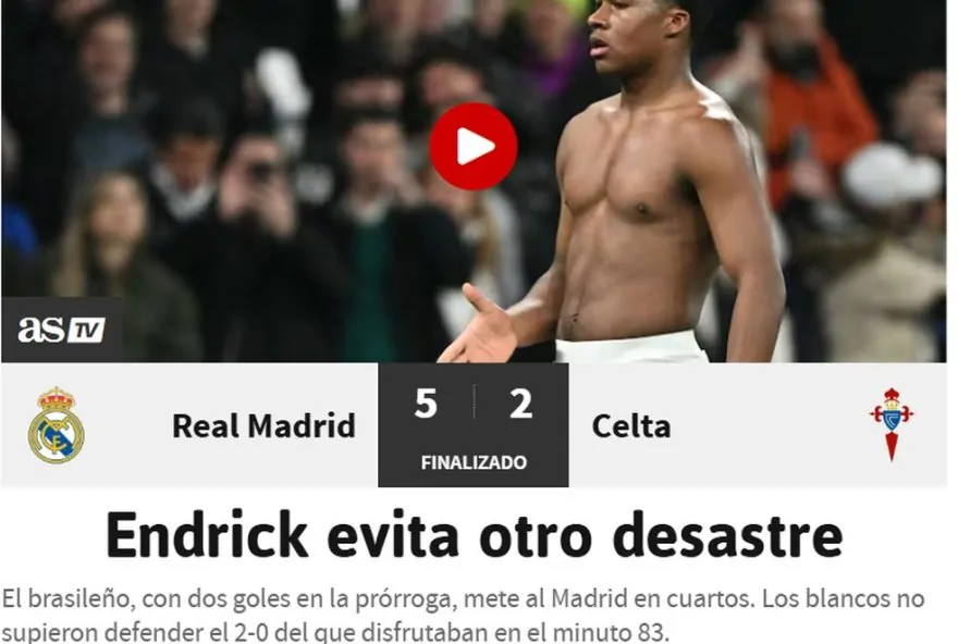 Endrick resolveu a vitória do Real Madrid sobre o Celta na Copa do Rei com dois gols na prorrogação, e sua atuação não passou despercebida pela imprensa espanhola. Os jornais de Madri destacaram a importância do atacante brasileiro na classificação sofrida dos merengues.