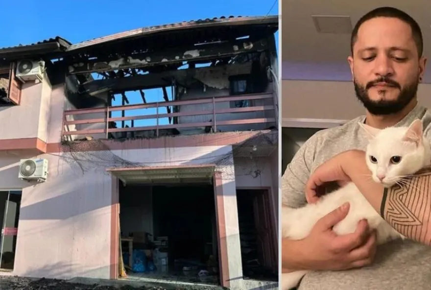 completamente destruído pelas chamas. Os pais do médico, que também moravam na