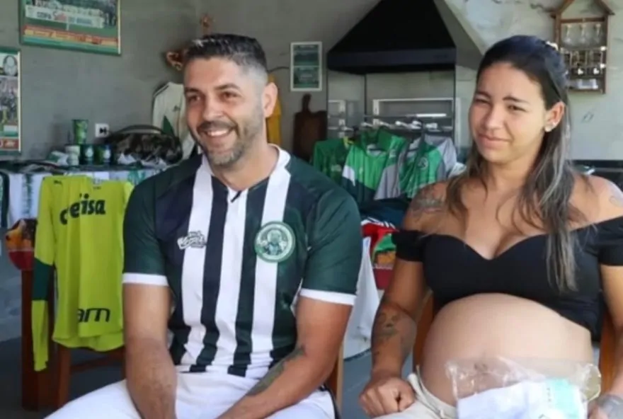 O casal formado por André Magri e Rayane Macedo, moradores de Atibaia, interior de São Paulo, está prestes a dar as boas-vindas a Abel, o nome escolhido em homenagem ao técnico do Palmeiras, que em breve chegará ao mundo. No entanto, o enxoval verde e branco preparado com tanto carinho ainda não está completo, pois falta uma peça importante: o body que André esperava que fosse autografado por DE após lançá-lo no gramado do Allianz Parque no dia 8 de novembro durante a partida contra o Grêmio pelo Brasileirão. Após um funcionário do estádio recolher a peça, a esperança agora dos pais é que ela esteja com o treinador para que possa ser devolvida.