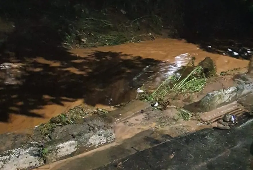 Córrego Timotinho transbordou e alagou ruas do bairro Alvorada na madrugada deste domingo (27). Três veículos foram arrastados e moradores tiveram prejuízos materiais.