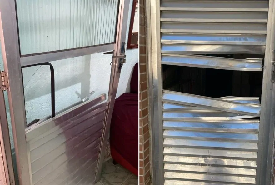 entrar na delegacia. Agora eu tô aqui com o portão todo aberto, quebrado”,