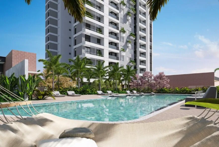 Mood ensolarado: O projeto foi pensado para quem ama o sol, a vibração do verão e a natureza! Elementos exclusivos, como a piscina com borda infinita, a praça externa e os lounges da piscina – que remetem muito à sensação de estar na praia – potencializam a energia de se viver a vida ao ar livre!