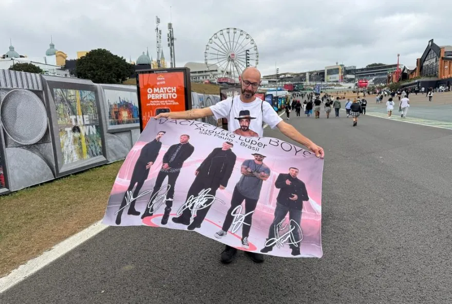 1 de 3 Escritor leva bandeira do Backstreet Boys no The Town em homenagem à