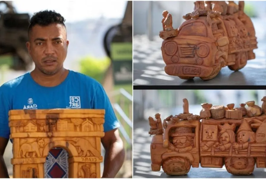 Em Paris, Mestre Din apresentará duas esculturas. A primeira, inspirada no Arco do Triunfo, um dos monumentos mais famosos da capital francesa, mas com elementos culturais do Cariri cearense. A segunda obra retrata um caminhão “Pau de Arara” dirigido por Patativa do Assaré, ícone das migrações nordestinas e da cultura popular.