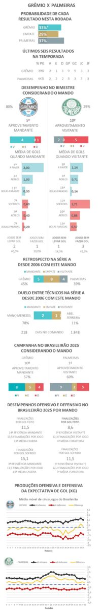 Grêmio x Palmeiras: Estatísticas, análise e previsões para o jogo no Brasileirão