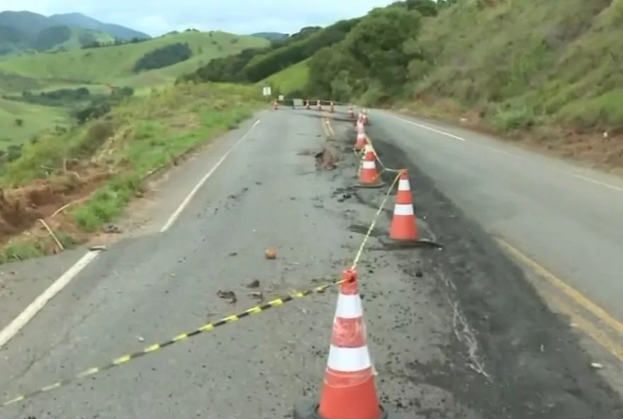 “É, o que tá sendo feito no momento, que devido à chuva, tem previsão ainda de mais chuva, é os paliativos, desviando a água e bem sinalizado até, deve ser colocado alguns redutores de velocidade, quebra-mola, pra diminuir bem o risco, porque o risco existe, que é uma curva, e a tendência é esse asfalto ceder mais ainda. Então a gente está tomando cuidado monitorando para que não tenha que interditar a pista completamente”, disse o representante da Defesa Civil.