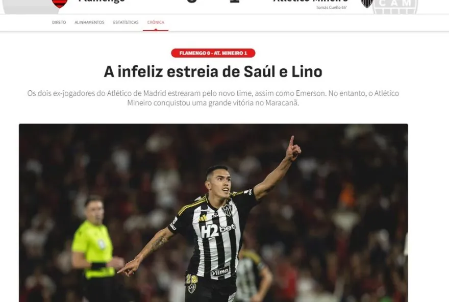 Na partida em que o Flamengo foi derrotado por 1 a 0 pelo Atlético-MG, os novos reforços ficaram no banco até a segunda etapa, quando entraram em campo a pedido do técnico Filipe Luís. A mídia espanhola repercutiu as estreias de Samuel Lino, Emerson Royal e Saúl, com o jornal AS destacando o forte elenco que o Flamengo vem montando. A presença dos jogadores de renome internacional no time chamou atenção.