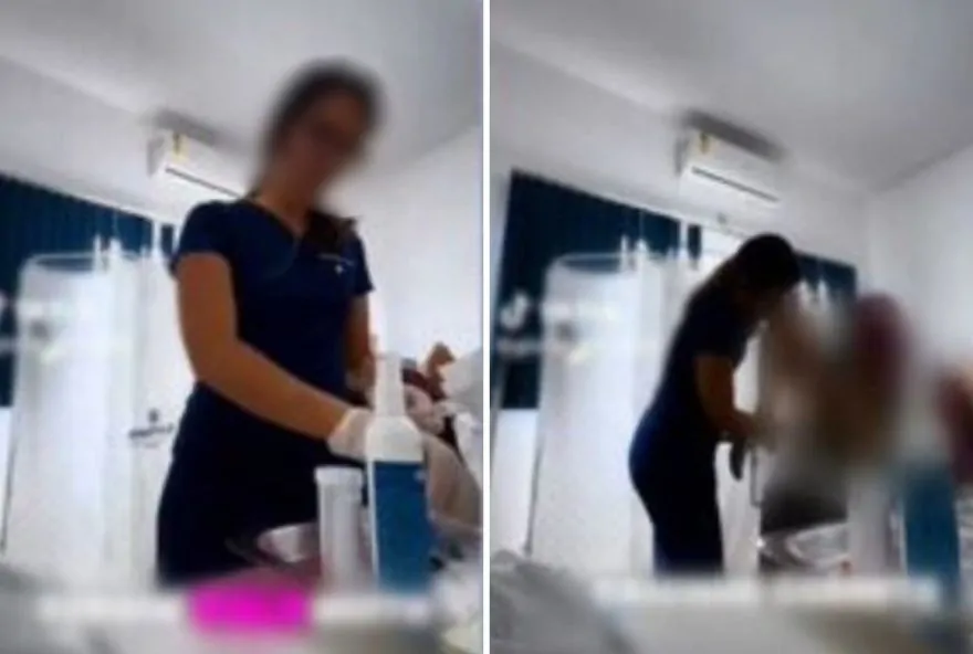 Na filmagem, a paciente aparece deitada na maca e suas partes íntimas estão expostas no vídeo. Caso aconteceu em janeiro de 2025.