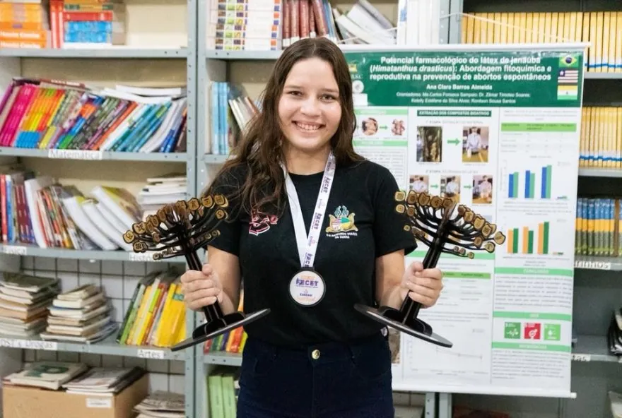 A estudante Ana Clara Barros Almeida, de 17 anos, do Centro de Ensino Raimundo Soares da Cunha, em Imperatriz, conquistou o 1º lugar na Feira de Ciências, Engenharia e Tecnologia (FECET), realizada em Cascavel (PR), com um projeto sobre o uso medicinal da planta janaúba. A pesquisa busca desenvolver um suplemento natural para ajudar mulheres com histórico de abortos espontâneos.