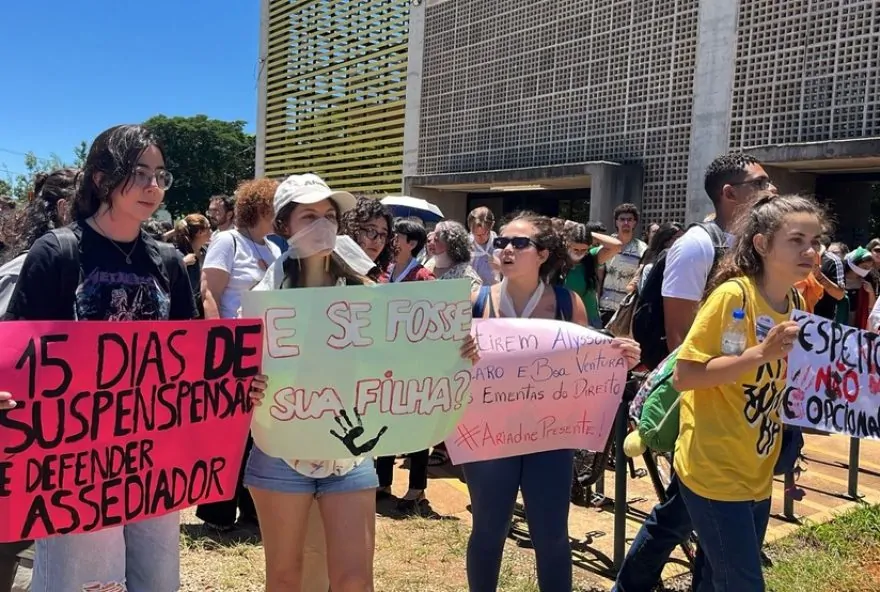 Professores e estudantes da Universidade de Brasília (UnB) se reúnem nesta sexta-feira (6) em uma marcha contra o assédio na instituição. O grupo se concentrou no Bloco de Salas de Aula Sul e caminharam até a reitoria.