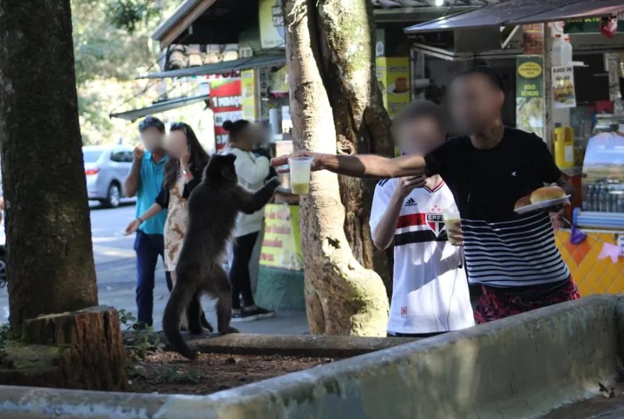 Salgadinho, refrigerante e até talher compartilhado: estudo da Unicamp alerta para risco da alimentação de macacos por turistas