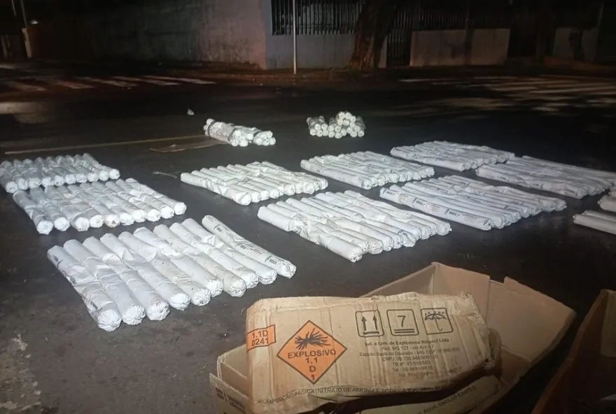 Material foi encontrado em Campo Mourão após caminhonete ser vista com aviso de ‘cuidado explosivo’ em caixas. Investigações continuam para identificar suspeitos.