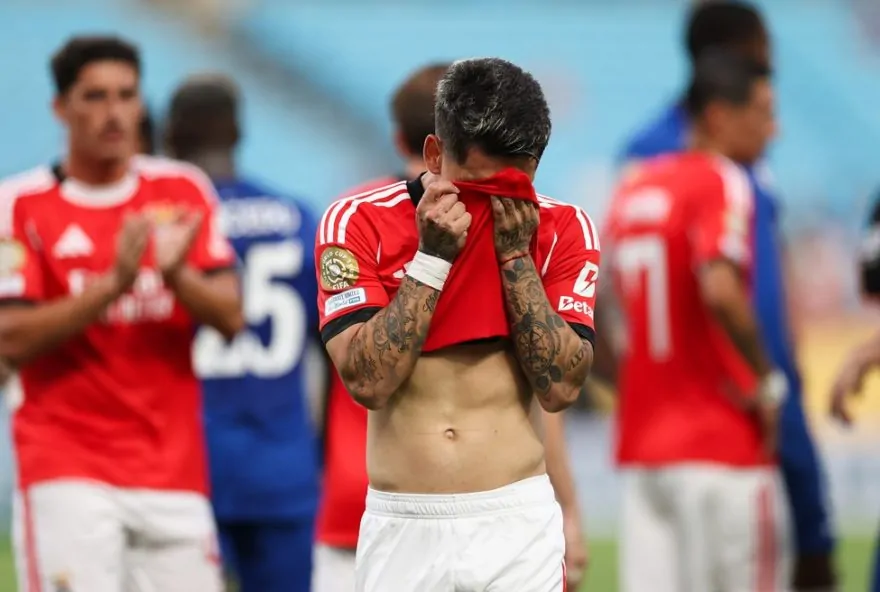 Tiago Gouveia afirma que o clima no vestiário da equipe portuguesa era de desolação. A história de que os europeus não têm dado atenção à Copa do Mundo de Clubes é perfeitamente rebatida por duas imagens das oitavas de final entre Benfica e Chelsea, vencida por 4 a 1 pelos ingleses após empate no tempo regulamentar e na primeira etapa da prorrogação. Os Blues explodiram com o gol de Nkunku, o segundo da equipe, enquanto o vestiário dos portugueses era só tristeza. O ponta Tiago Gouveia revelou o abatimento dos colegas.