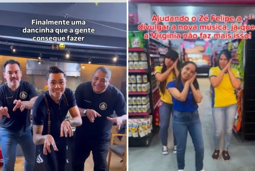 Artistas e fãs de todo país se mobilizam para dançar músicas de Zé Felipe após Virginia Fonseca, ex-esposa do cantor, parar de postar coreografias. O cantor Felipe Araújo e o ex-BBB Vinicius Nascimento foram alguns dos artistas que entraram na trend que está viralizada nas redes sociais. No vídeo com mais de 5 milhões de visualizações, Felipe dança o novo lançamento de Zé Felipe ao lado do ex-jogador Vampeta (veja o vídeo acima).