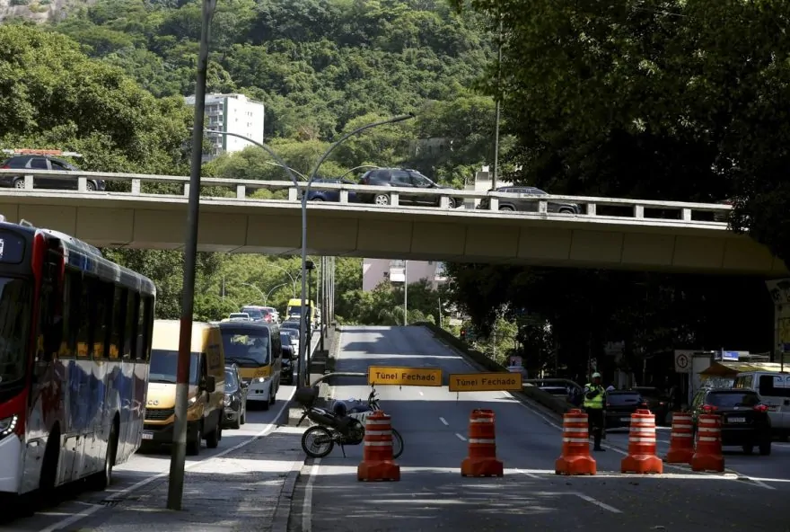 O Túnel Santa Bárbara segue fechado no sentido Centro, após queda de estrutura na galeria durante a madrugada. Com previsão de reabertura adiada por tempo indeterminado, equipes continuam no local. Para evitar transtornos, o prefeito Eduardo Paes recomendou aos motoristas que evitem a região. Enquanto isso, opções de trajeto para quem precisa se deslocar da Zona Sul para o Centro incluem o Túnel Rebouças, Aterro do Flamengo, Praia do Flamengo, Praia de Botafogo e Lapa.