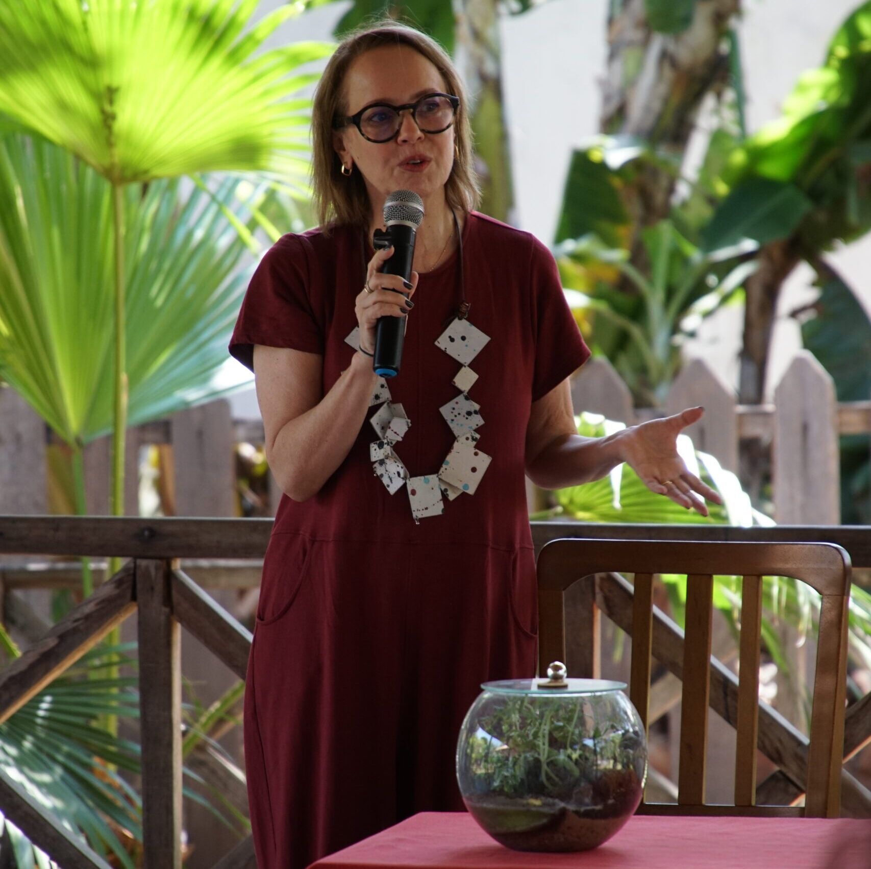 A pediatra Juliana Melgaço participou da palestra “Saúde, bem-estar e desenvolvimento infantil”, promovida pela Escola Casa Verde, destacando a importância do contato diário com a natureza para o desenvolvimento integral das crianças. Segundo orientações da Sociedade Brasileira de Pediatria (SBP), uma hora diária de atividades ao ar livre traz benefícios significativos para a saúde física, emocional e social dos pequenos. O painel fez parte da manhã de Portas Abertas da escola, que reuniu famílias de alunos e membros da comunidade interessados em conhecer a metodologia interacionista e os espaços pedagógicos da instituição. Na ocasião, os visitantes puderam conhecer o amplo espaço verde da escola, com árvores nativas, horta pedagógica e áreas especialmente planejadas para atividades que integram as crianças ao meio ambiente de forma natural e lúdica. (Crédito da imagem: Douglas Pazini)