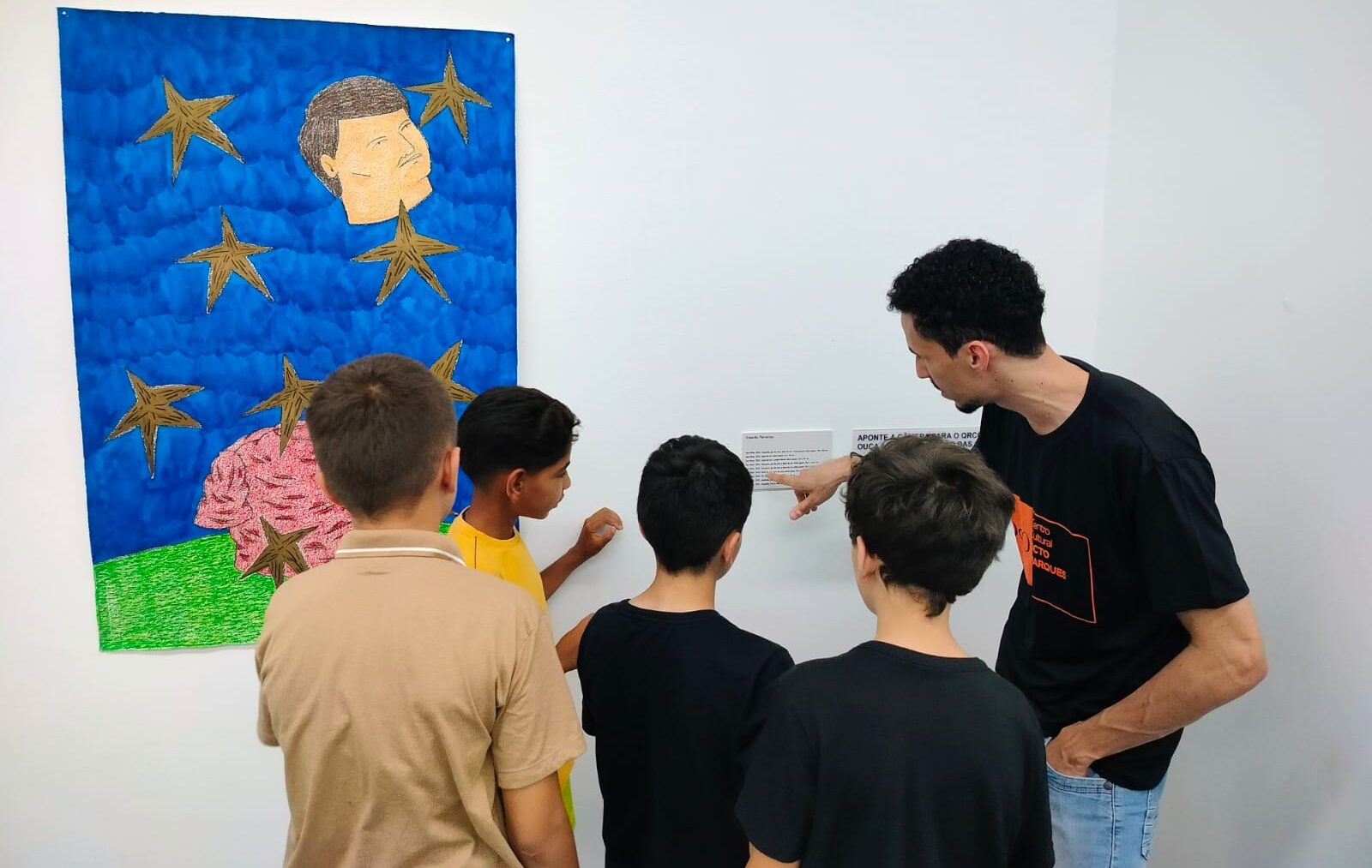 A Associação dos Amigos da Galeria de Artes Antônio Sibasolly deu início, na última sexta-feira (03/10), às ações educativas da coletiva “Novas Aquisições – Coleção Artistas Goianos”, em cartaz no Centro Cultural Octo Marques. O projeto conta com o apoio do Edital de Fomento às Artes Visuais da Política Nacional Aldir Blanc de Fomento à Cultura (PNAB), operacionalizada pela Secretaria de Estado da Cultura (Secult Goiás). Cerca de 80 estudantes da Escola Municipal Dalísia Martins Doles, dos 5º e 9º anos, foram os primeiros a participar das visitas mediadas ao conjunto de obras que compõem a exposição. A iniciativa marca o início de uma série de atividades formativas voltadas à rede pública de ensino e também ao público espontâneo, promovendo o contato direto com a produção contemporânea realizada em Goiás. Além do caráter educativo, o projeto se destaca pela inclusão. Com recursos de acessibilidade como audiodescrição, QR Codes táteis, interpretação em LIBRAS e a produção de um catálogo bilíngue com encarte em braille, a mostra amplia o acesso e o alcance do conteúdo artístico.