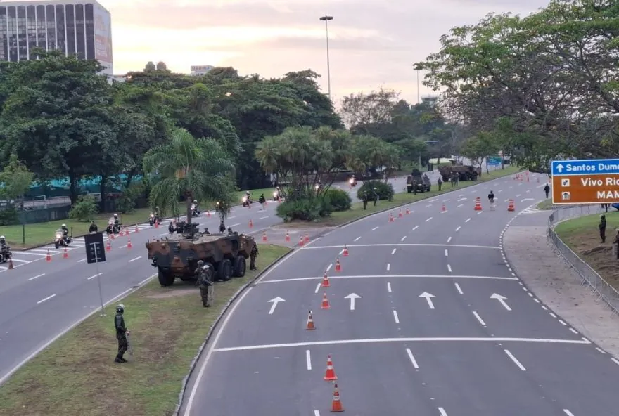 Por todo Aterro, homens do Exército com tanques de guerra reforçam o esquema de segurança especial para o Brics.