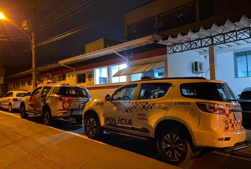pai em atendimento de ocorrência de desentendimento familiar. Viaturas da PM em frente ao Plantão Policial de Limeira durante apresentação de ocorrência. Um homem foi preso na noite desta quarta-feira (9) após ameaçar seus pais em uma