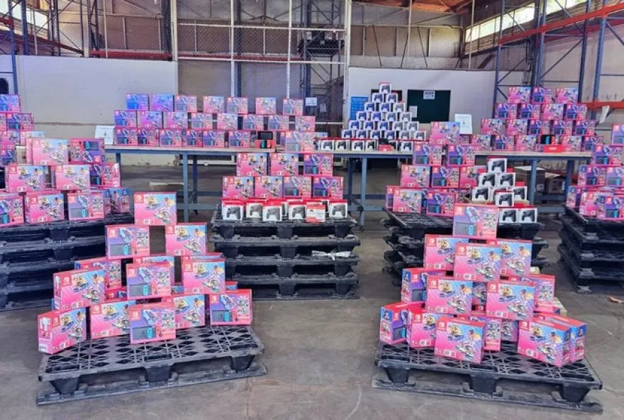Apreensão de videogames e controles no DF — Foto: Sefaz-DF/Reprodução