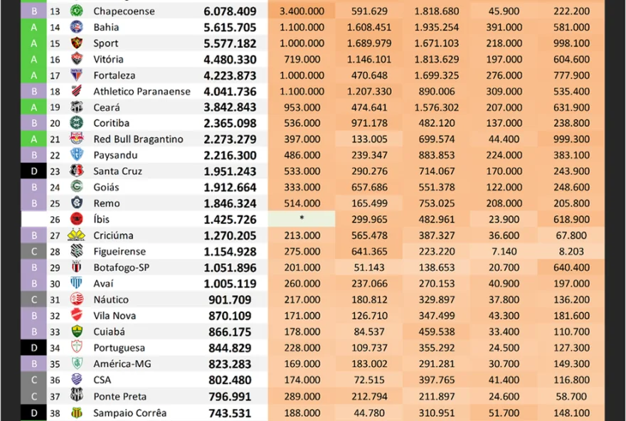 O Ranking Digital dos Clubes Brasileiros do Ibope Repucom exibiu os cinco clubes com maiores crescimentos em agosto, com destaque para Santos, Flamengo, Corinthians, Atlético-MG e São Paulo. Somados, esses times geraram 1,4 milhão das 1,9 milhão de novas inscrições monitoradas pelo estudo. O Santos, em particular, liderou o crescimento com 420 mil novos seguidores em suas redes sociais, mostrando um desempenho excepcional no TikTok e Facebook.