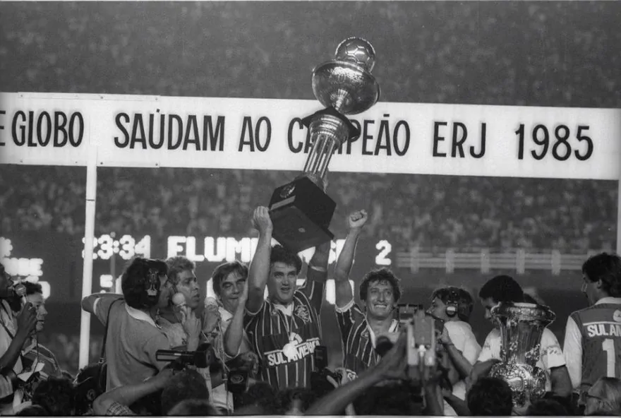 Vica levanta a taça do tricampeonato Carioca em 1985 — Foto: Flu Memória/site oficial do Fluminense