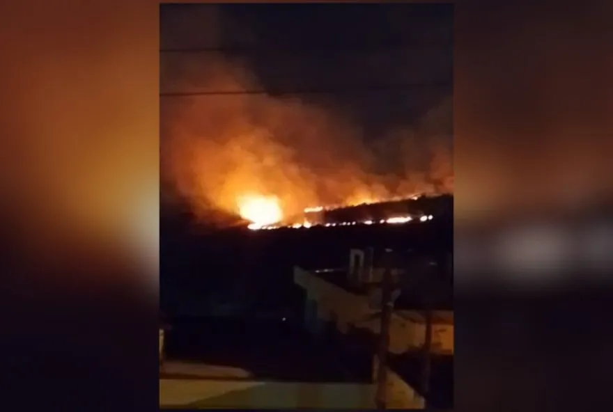Um incêndio em uma área de mata mobilizou equipes de bombeiros voluntários na noite de quarta-feira (15), no Jardim Bahia, em Várzea Paulista (SP).