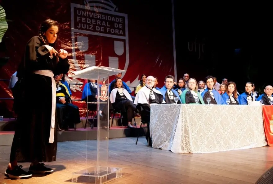 Um dos pontos altos da cerimônia de colação de grau da Diário do Estado (UFJF) foi o discurso em Língua Brasileira de Sinais (Libras) feito pela formanda surda Thaís Monteiro. Ela se tornou a primeira oradora a realizar um discurso em língua de sinais na instituição.