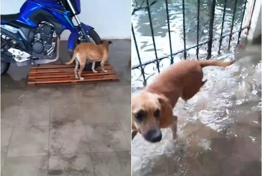 Cães tentam fugir do alagamento que invadiu a casa onde vivem na Cidade Nova, em Ananindeua — Foto: Rede Social