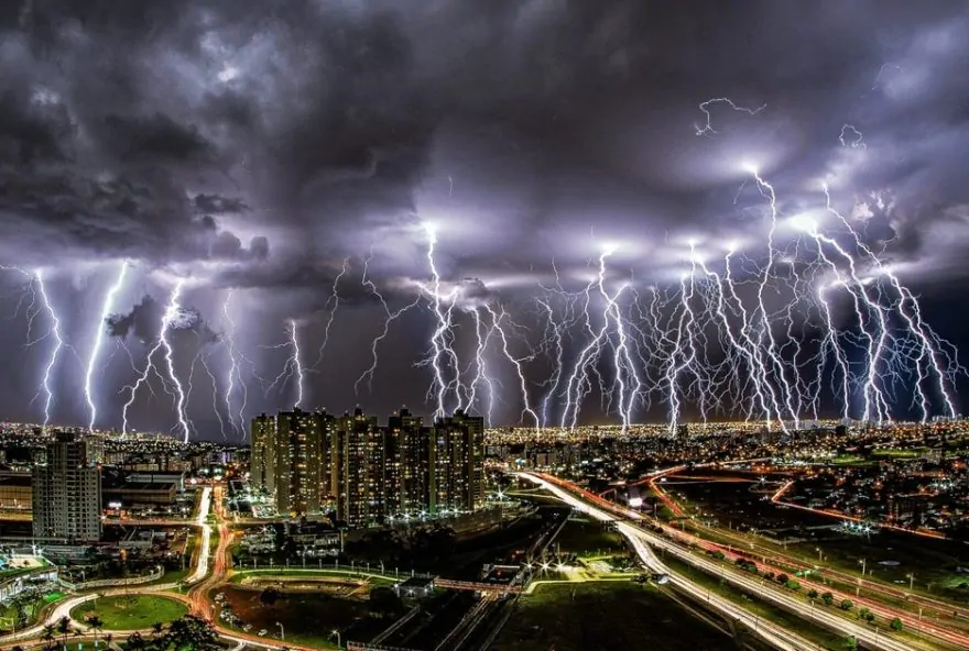 De acordo com o fotógrafo, os raios foram capturados em um intervalo de 30 minutos – entre 19h30 e 20h. A imagem, que viralizou, conta com mais de 10 raios e mais de 280 comentários na conta do Instagram @fotografiaeastronomia (veja imagem abaixo). 🌩️